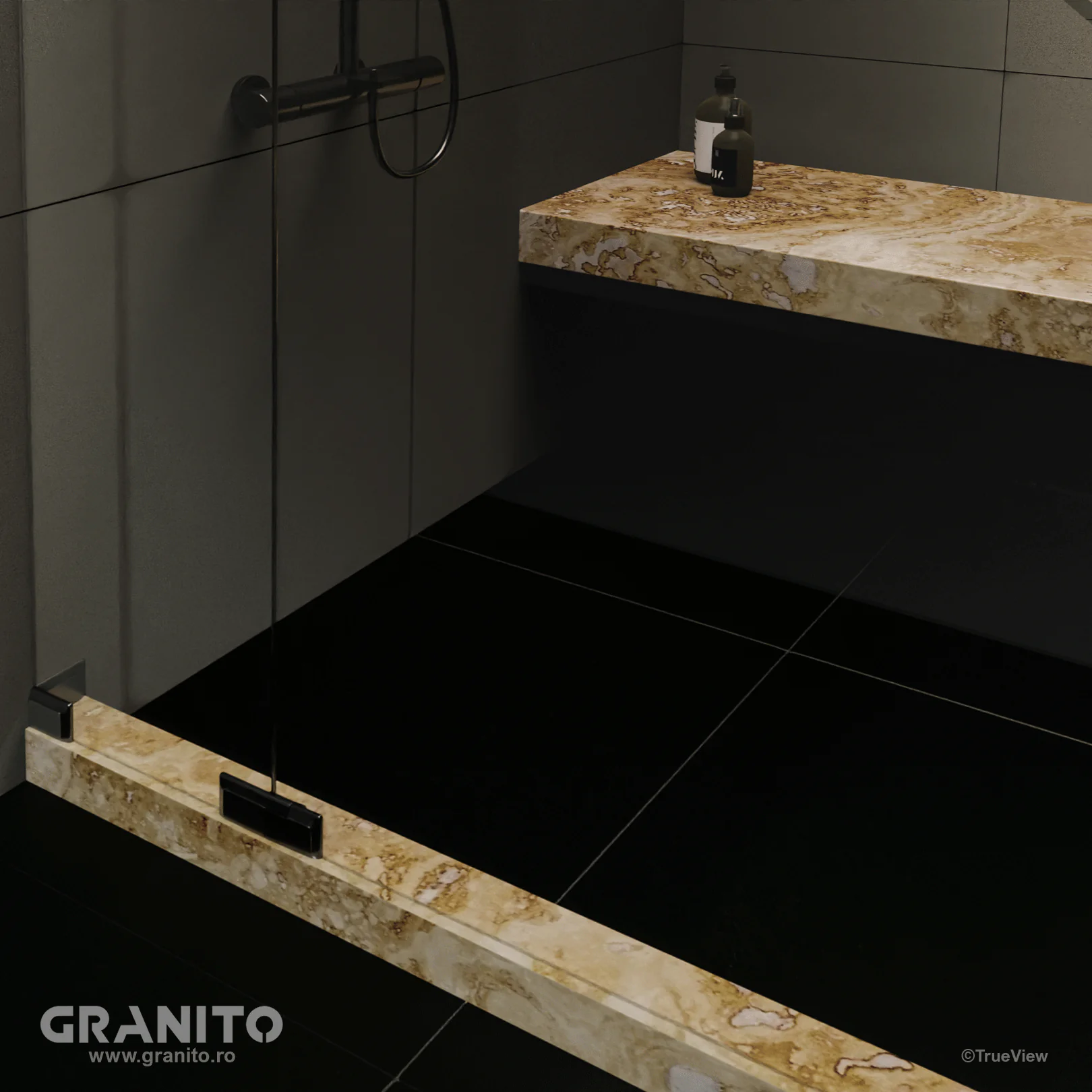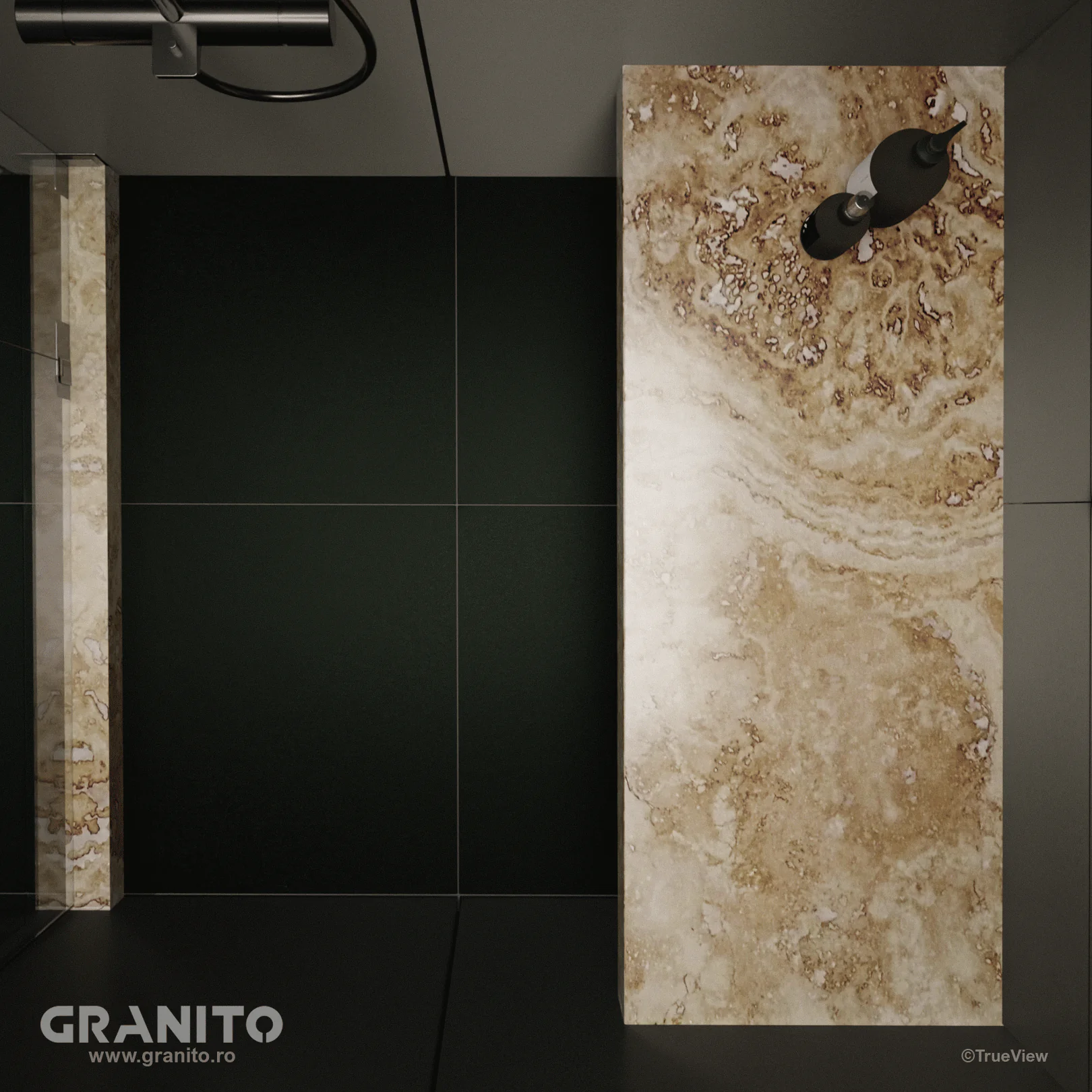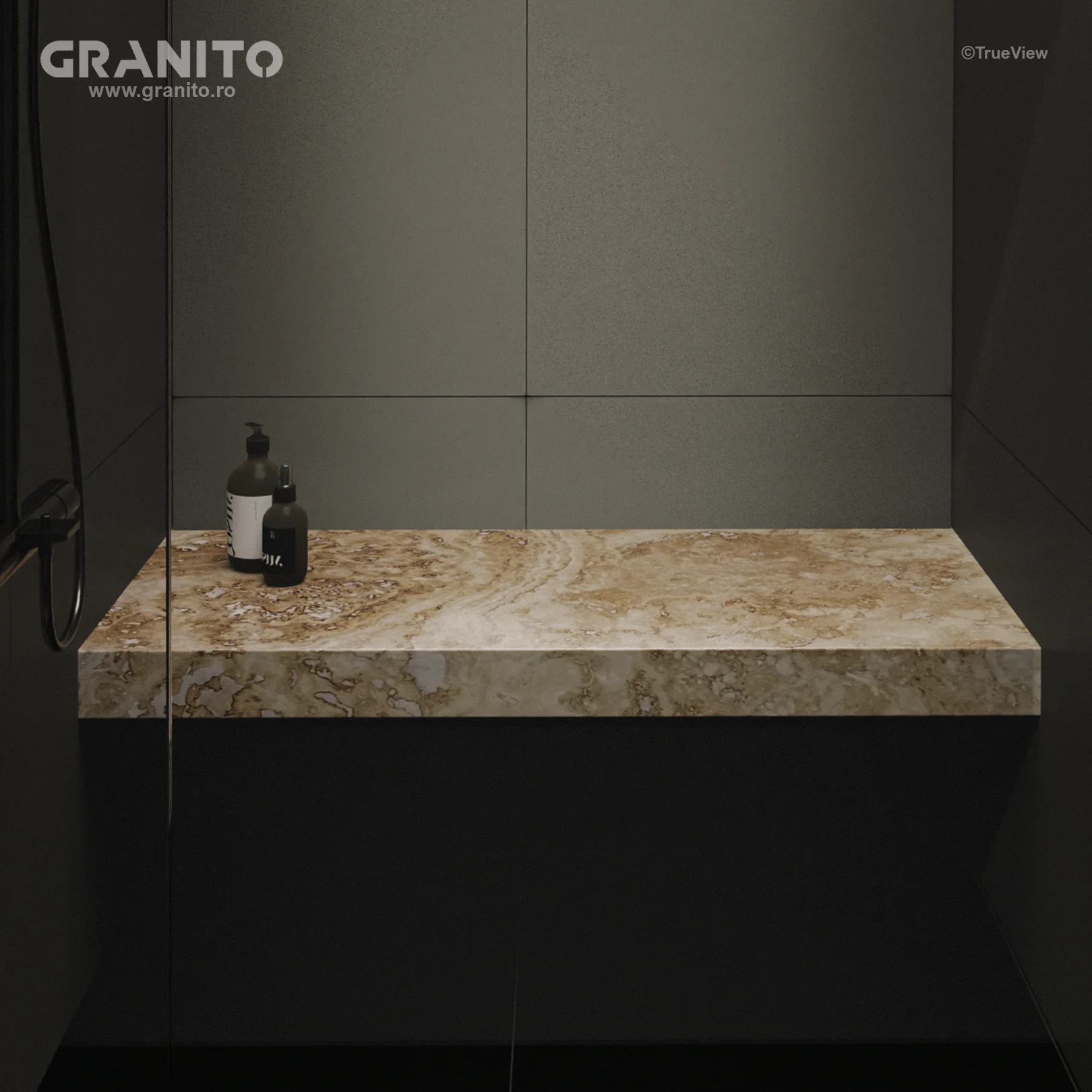 Travertinul Clasic, cu nuanțe calde de crem și bej și vene discrete, aduce eleganță atât interioarelor cât și exterioarelor. Luminos și versatil, este ideal pentru a crea spații relaxante, de la livinguri rafinate la terase însorite și curți îmbietoare.