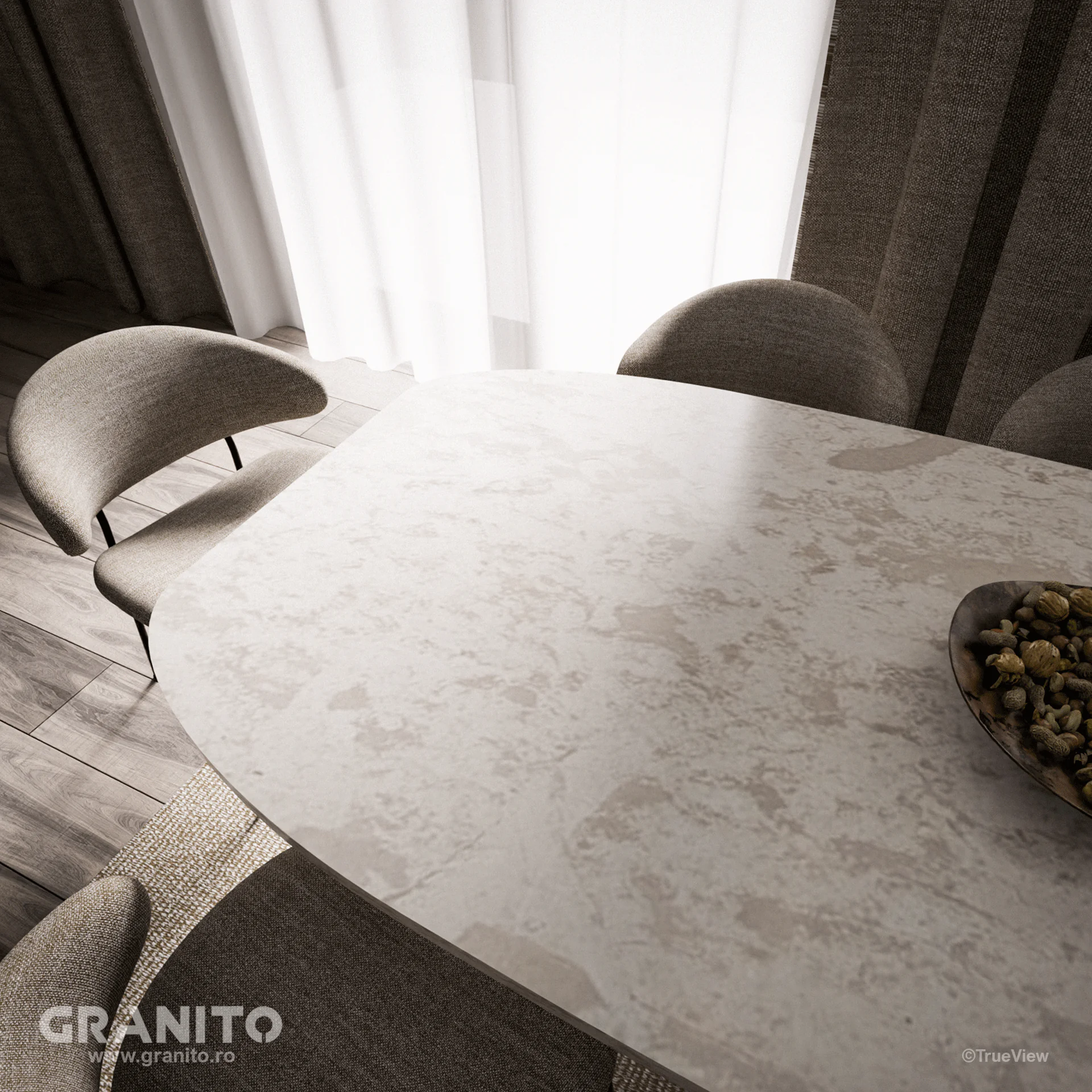 Mesele noastre, realizate din materiale de piatră naturale variate, răspund exigențelor estetice și funcționale ale vieții contemporane.