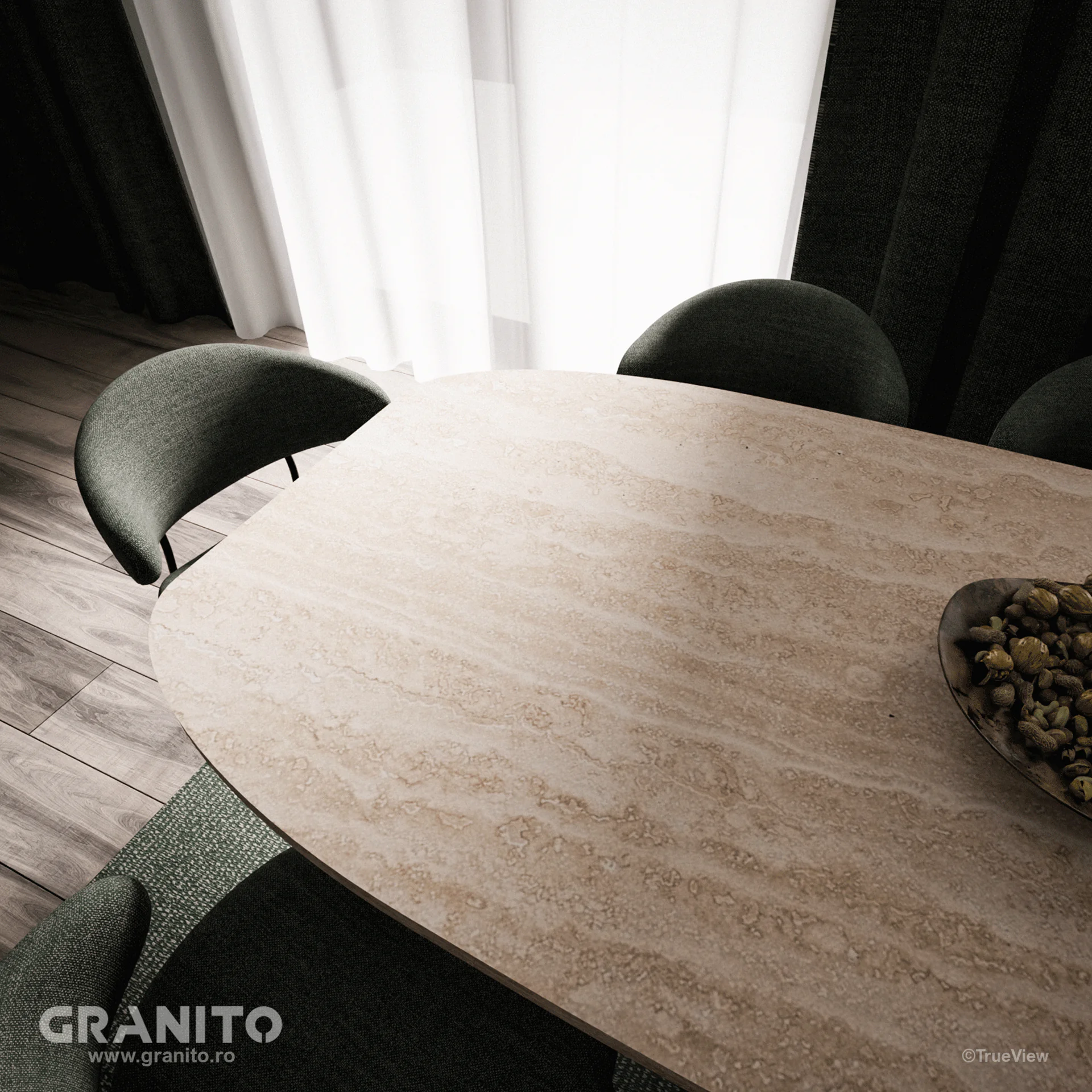 Mesele noastre, realizate din materiale de piatră naturale variate, răspund exigențelor estetice și funcționale ale vieții contemporane.