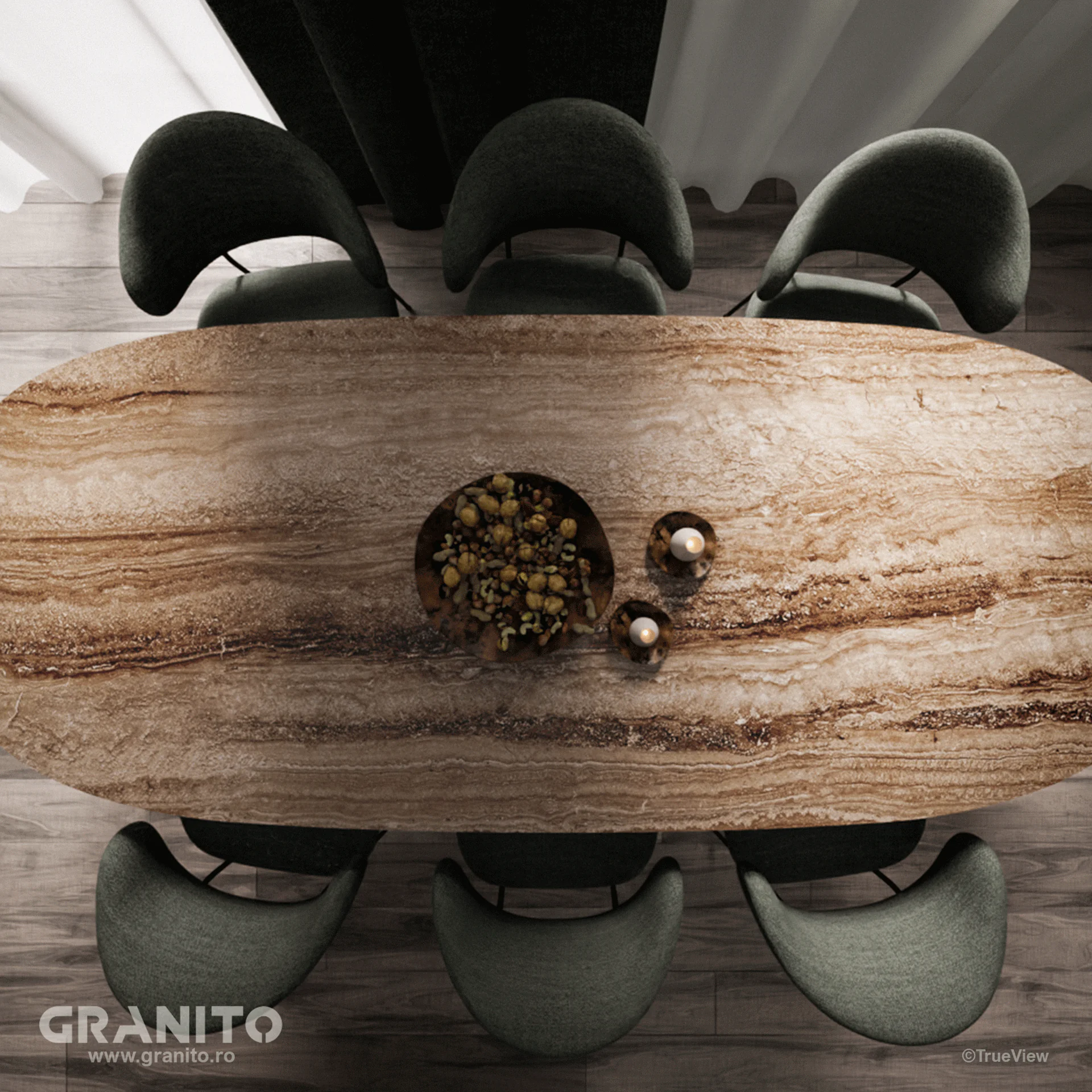 Piatra naturală prezintă variații de nuanță, motiv pentru care imaginile de prezentare au un caracter strict informativ și pot să nu reflecte cu exactitate aspectul real al produsului.