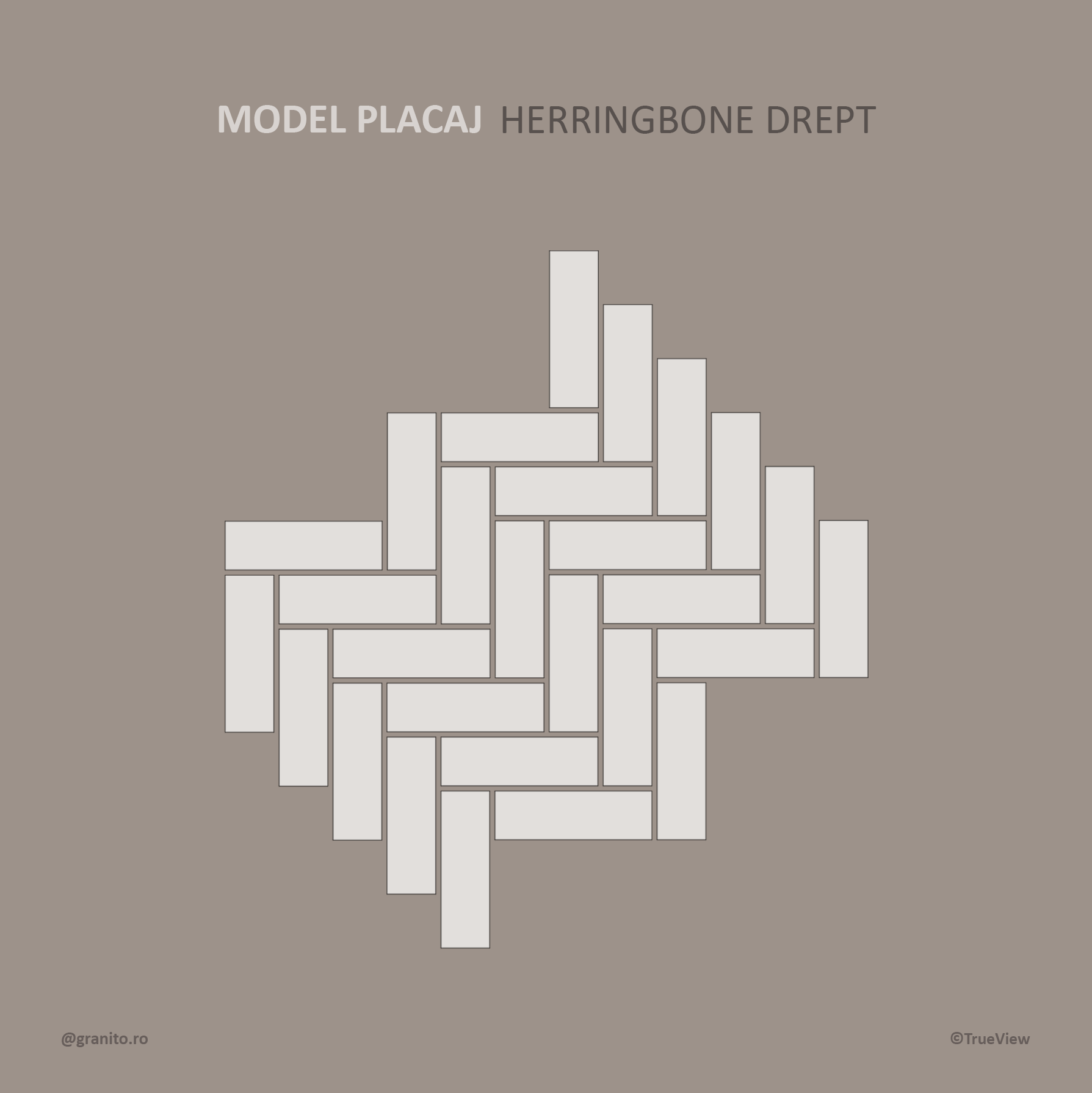 Ideal atât pentru proiectele interioare, cât și pentru cele exterioare, acest model combină practicitatea cu un stil atemporal. Alege Herringbone Drept pentru a-ți redefini spațiul printr-un design curat, care îmbină estetica ordonată cu rezistența materialelor naturale.