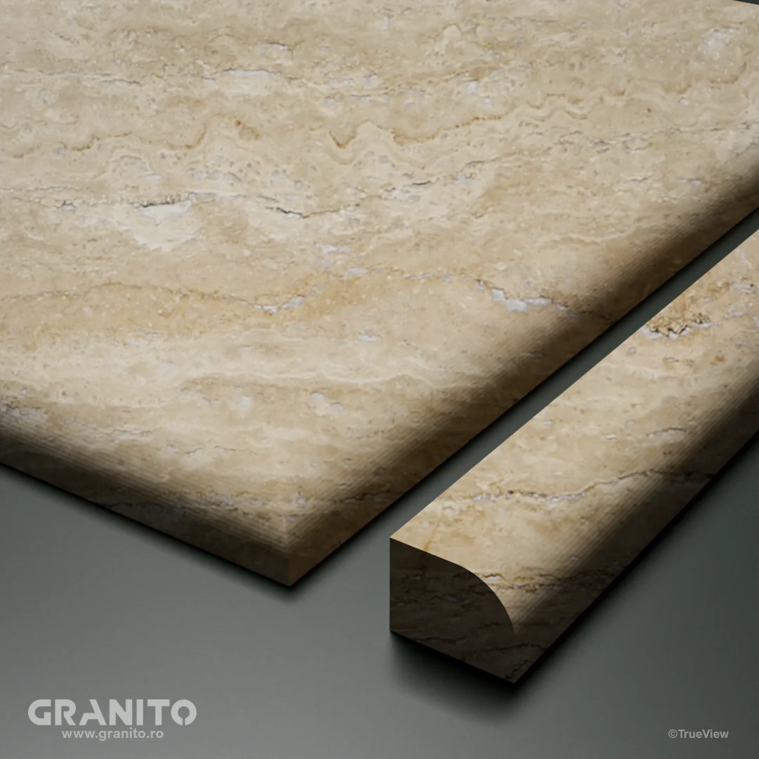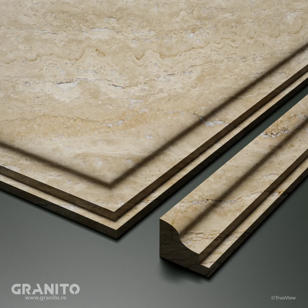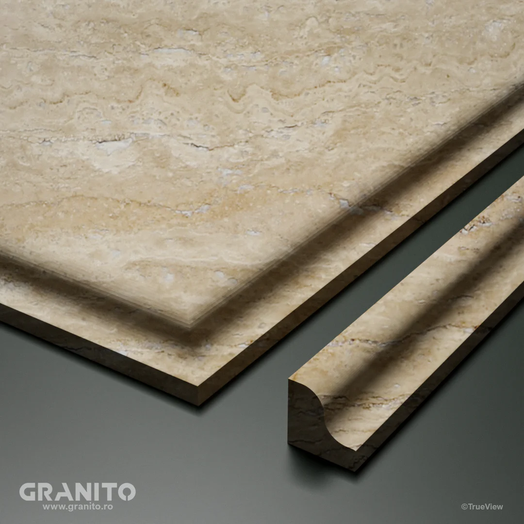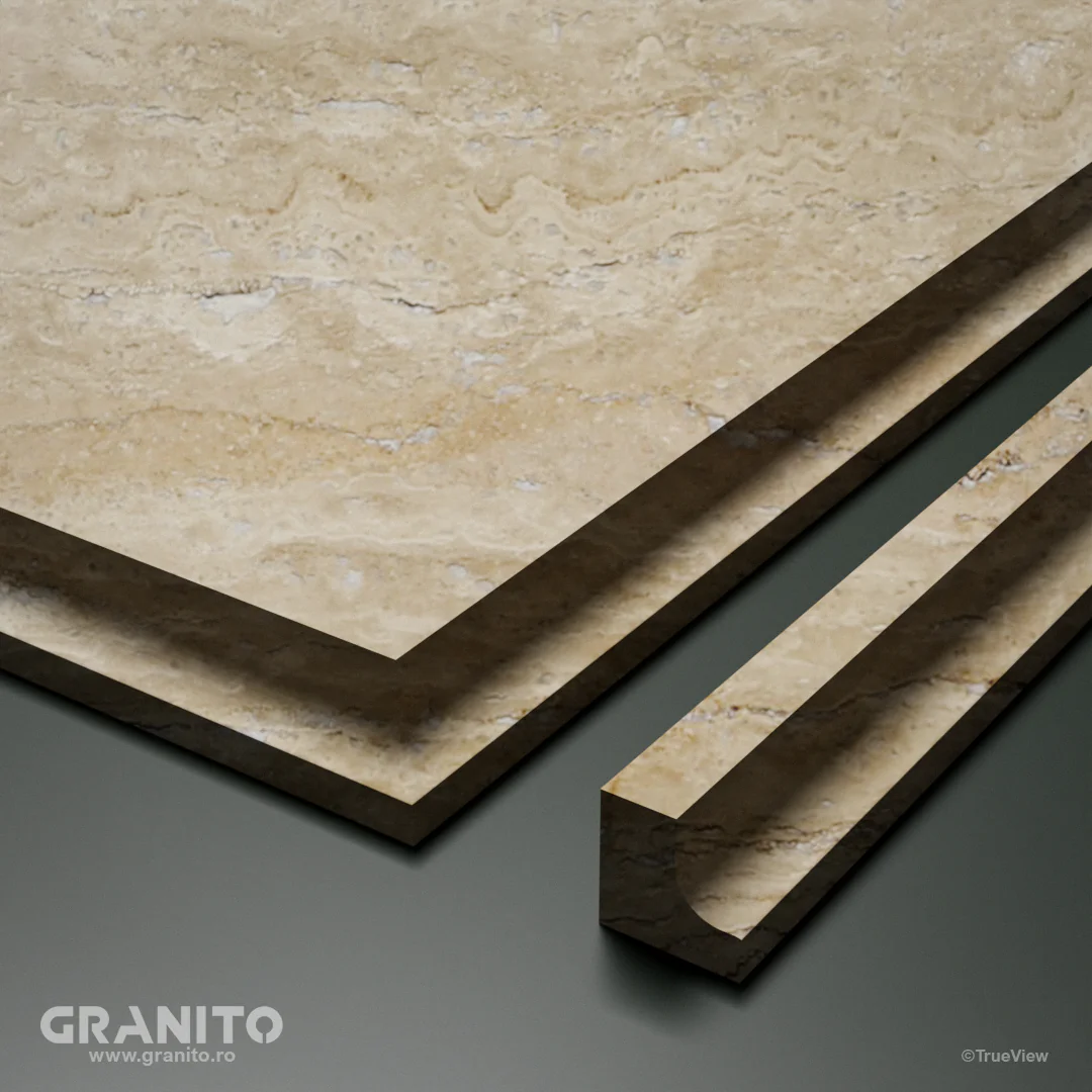 Travertinul Vein Cut se distinge prin tăieturile sale longitudinale, care evidențiază liniile naturale și pattern-ul organic al pietrei, pentru un impact estetic puternic.