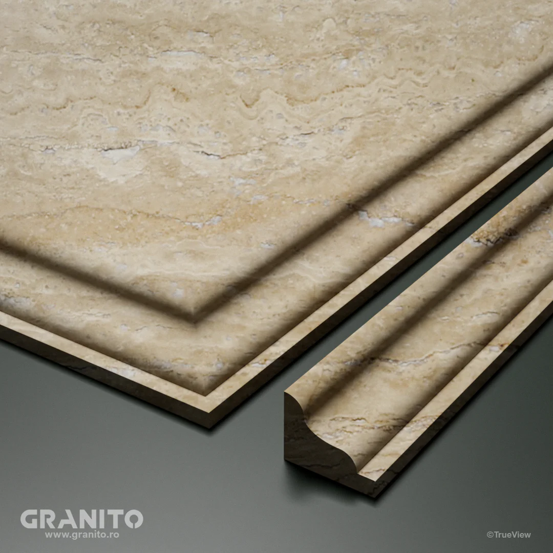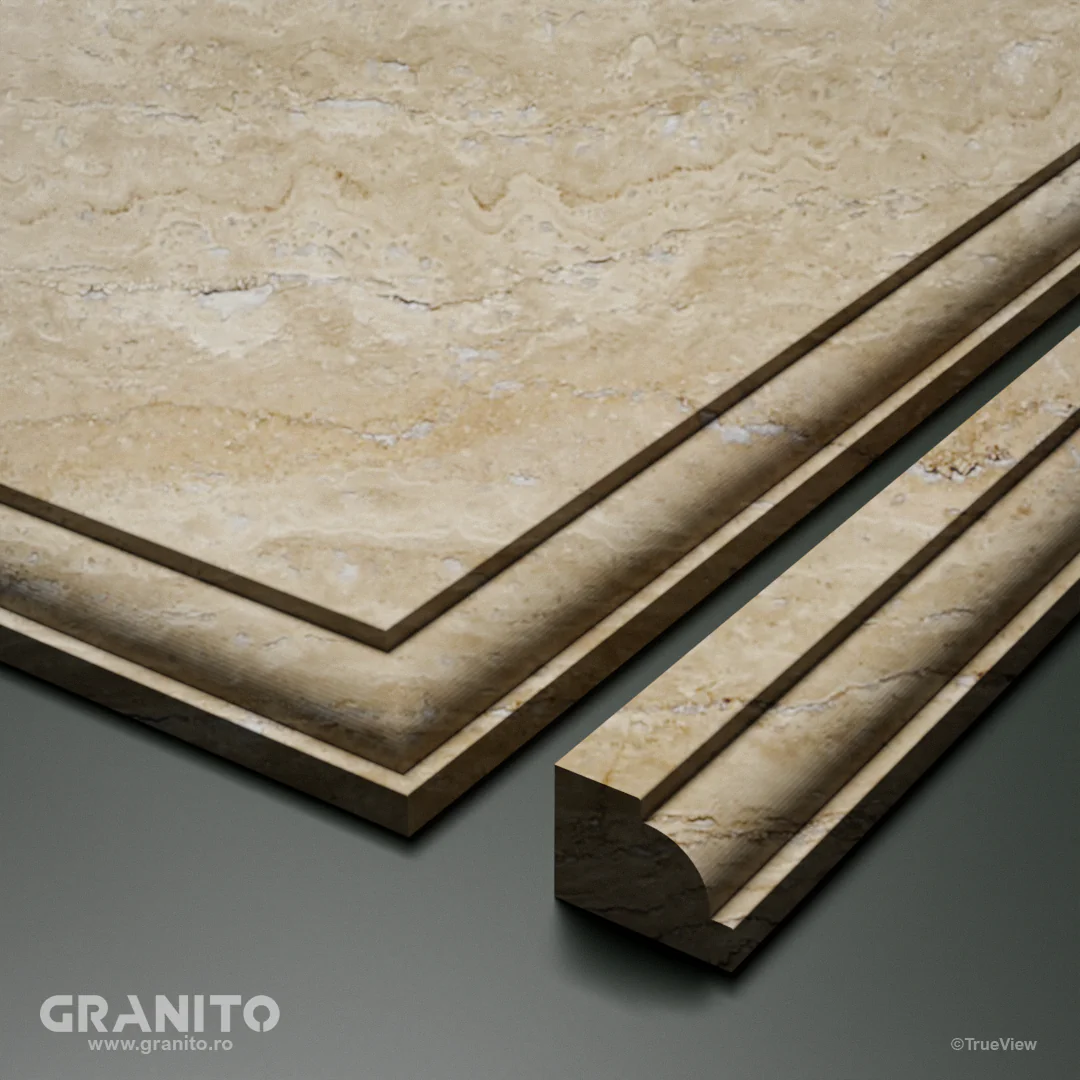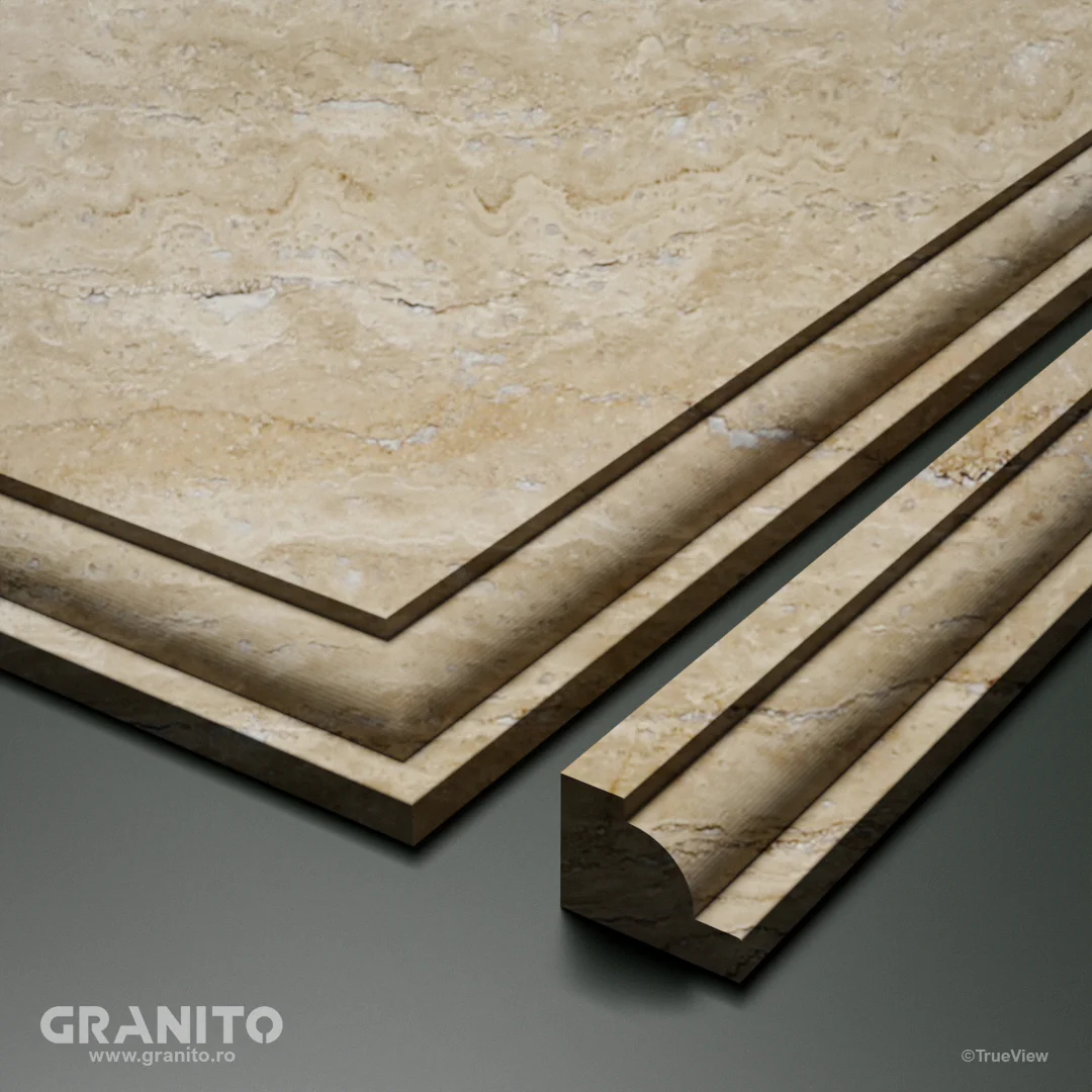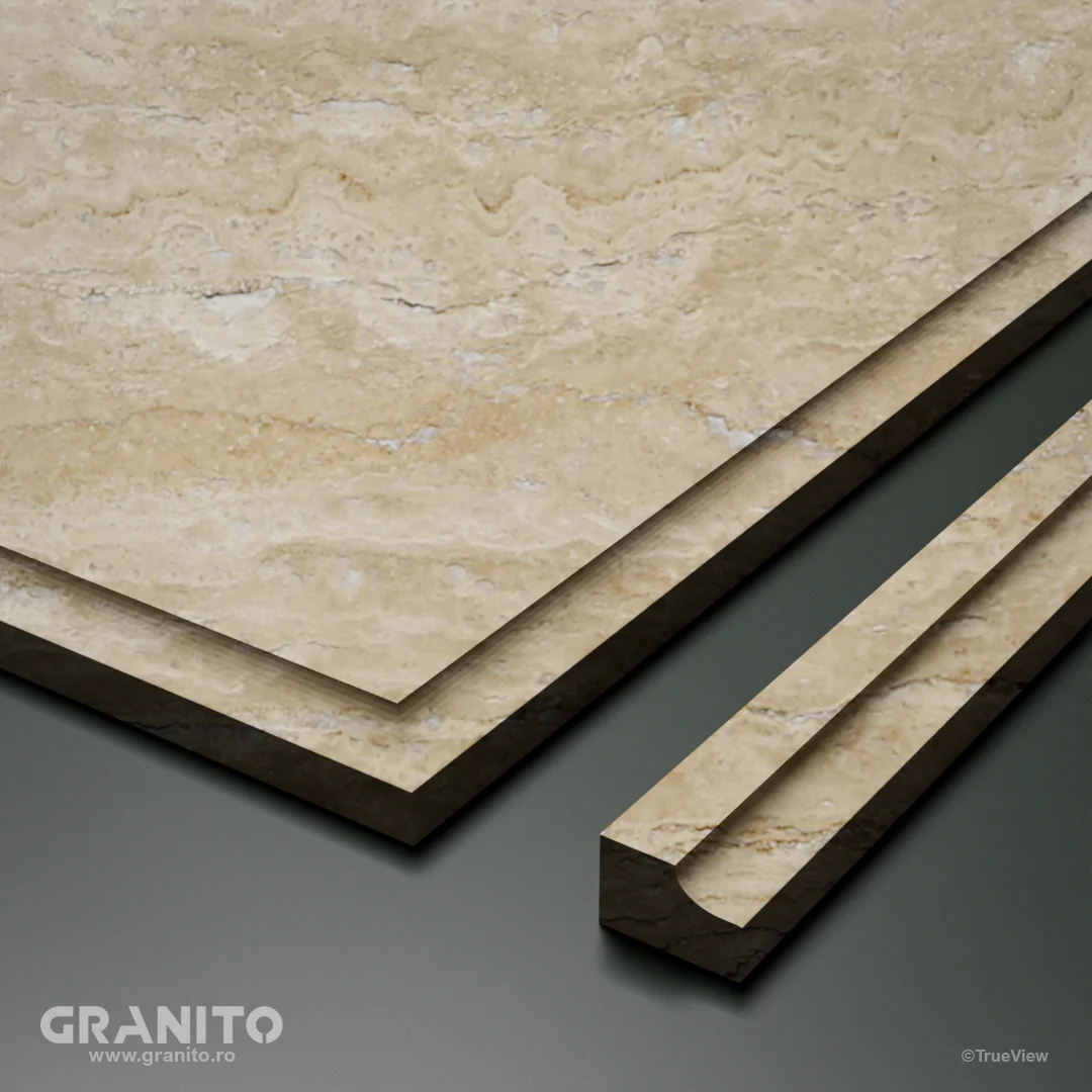Travertinul Clasic, cu nuanțe calde de crem și bej și vene discrete, aduce eleganță atât interioarelor cât și exterioarelor. Luminos și versatil, este ideal pentru a crea spații relaxante, de la livinguri rafinate la terase însorite și curți îmbietoare.